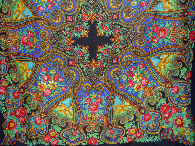 Платок нарисован в начале 90-х годов, одним из студентов Текстильного института им. Косыгина, проходившего практику на нашем предприятии.Натик писал(а):Шаль, ткань саржевого переплетения, видимо было 148х148, но после многократных стирок стало меньше.