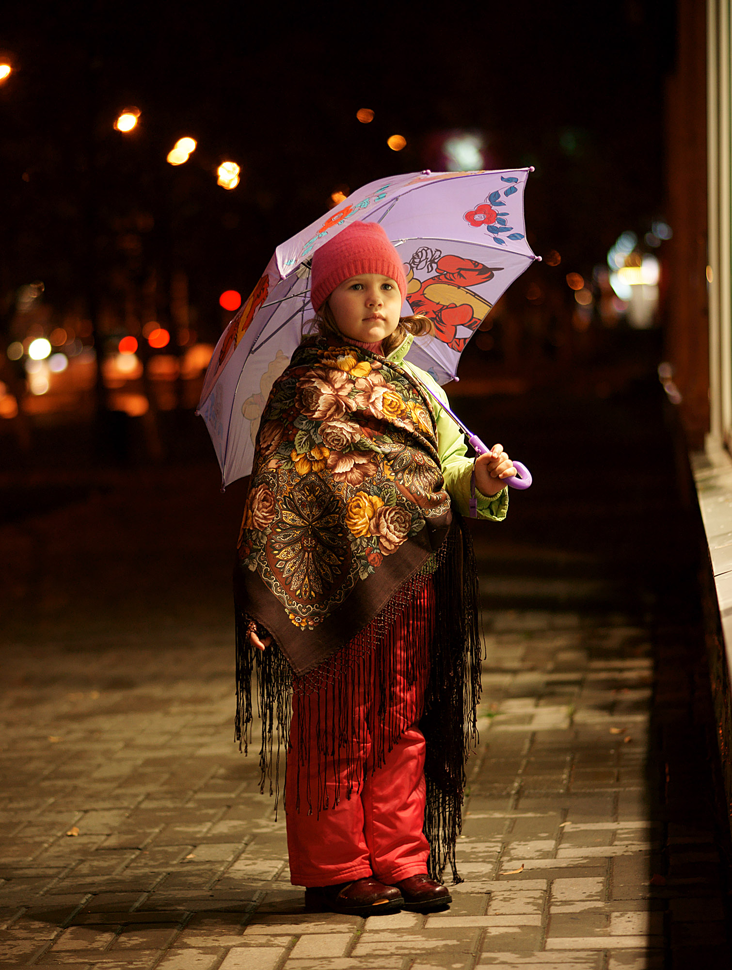 Присоединяюсь к похвалам Вашим фотографиям и дочке персонально. Все хороши - и дочурка, и шаль "Старый замок" и большой друг-медведь. Осеннее настроение чувствуется...