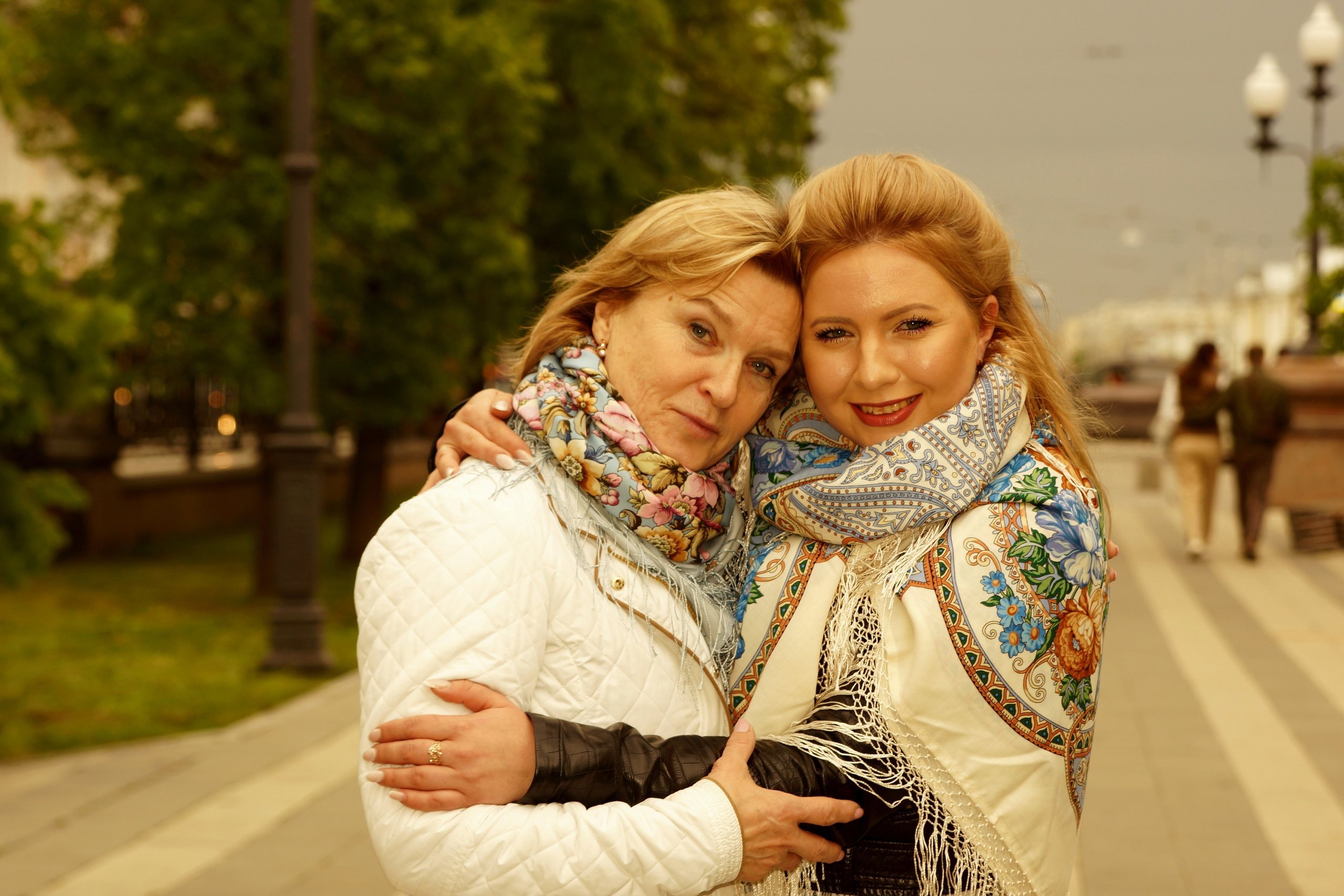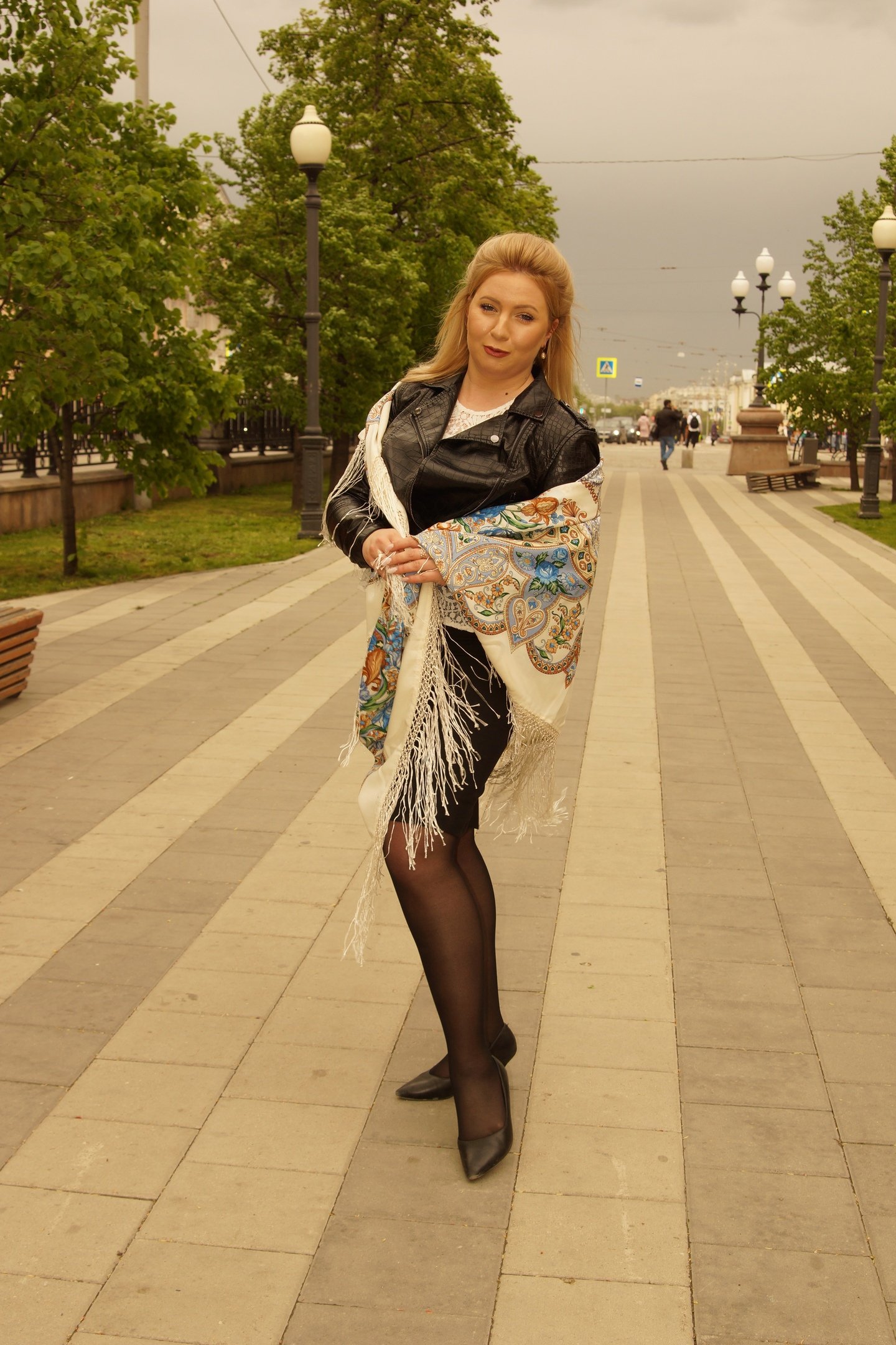 Вот кому идёт розовое Подмосковье, девушке в белой курточке, простите, не знаю имени, лучший показ этого платка.