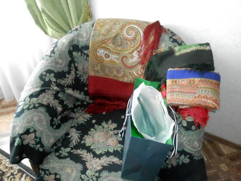 За три часа перемерили кучу шалей и платков, наговорились, насмеялись.
