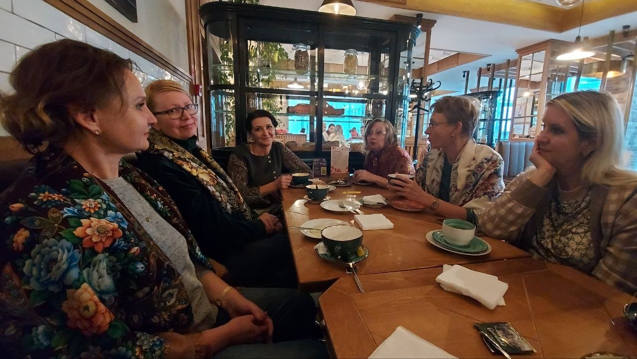 Замечательная встреча! Леночка премудрая, рада видеть, Таня и Оля Дусятко вы, после Санкт-Петербурга, видимо, не расставались), Юлечка - сама элегантность. Девочки екатеринбурженки спасибо вам , соскучилась по встречам, таким теплым, веселым, платочно-шальным.