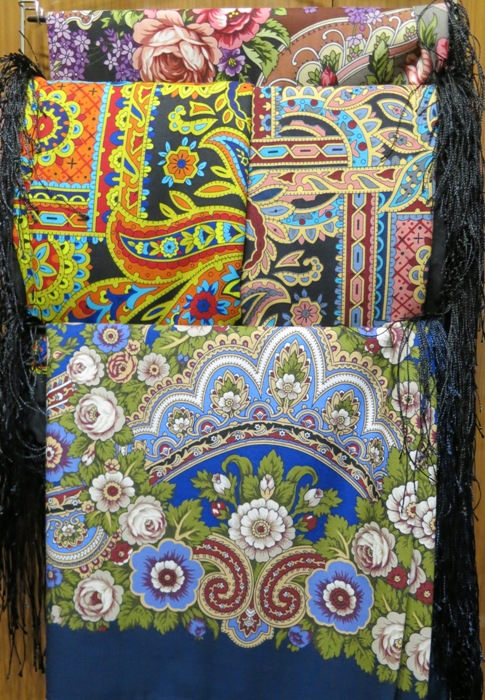 В БЗК встретилось немало павловопосадских шалей и платков, но потряс 21-й (а может, 22-й?) колорит Браслета на плечах у дамы, скромно сидевшей на коричневом бархатном диванчике в фойе партера. Проходила мимо в антракте, и как током ударило – это было ТАК красиво, рисунок в полутьме мерцал, несколько раз прошла туда-обратно, шею свернула, пытаясь разглядеть получше, просто до неприличия…