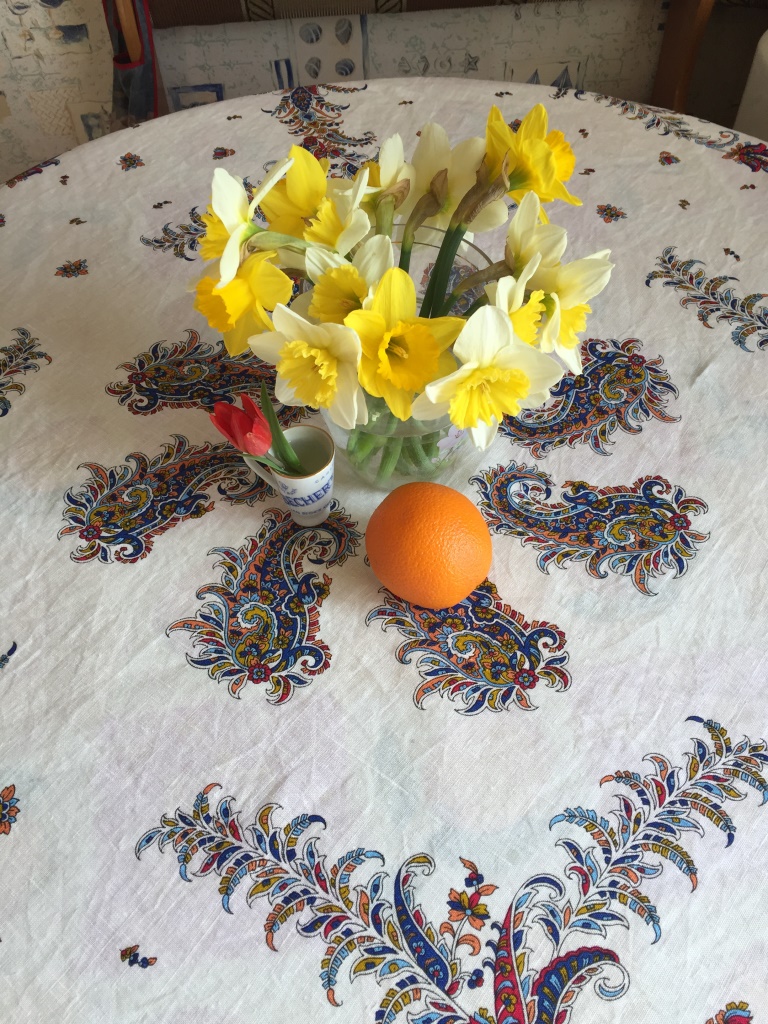 . Бегом ее в корзину отправила. Решила до кучи еще взять распродажную Золотую-3. Какая она толком не представляла, ибо фото в архиве совсем нет. Вчера скатерки пришли. Сказать, что я в восторге - ничего не сказать. Ну, рождественский лен показывали уже. А я решила показать хлопковую квадратную Золотую. Может, кому надо, пока она есть в магазинах. Фото, извините уж, не очень, на скорую руку. Гладить не стала, ибо убрала сразу до случая. Скатерть показываю на полуразложенном столе-книжке. Так и планировала использовать.
