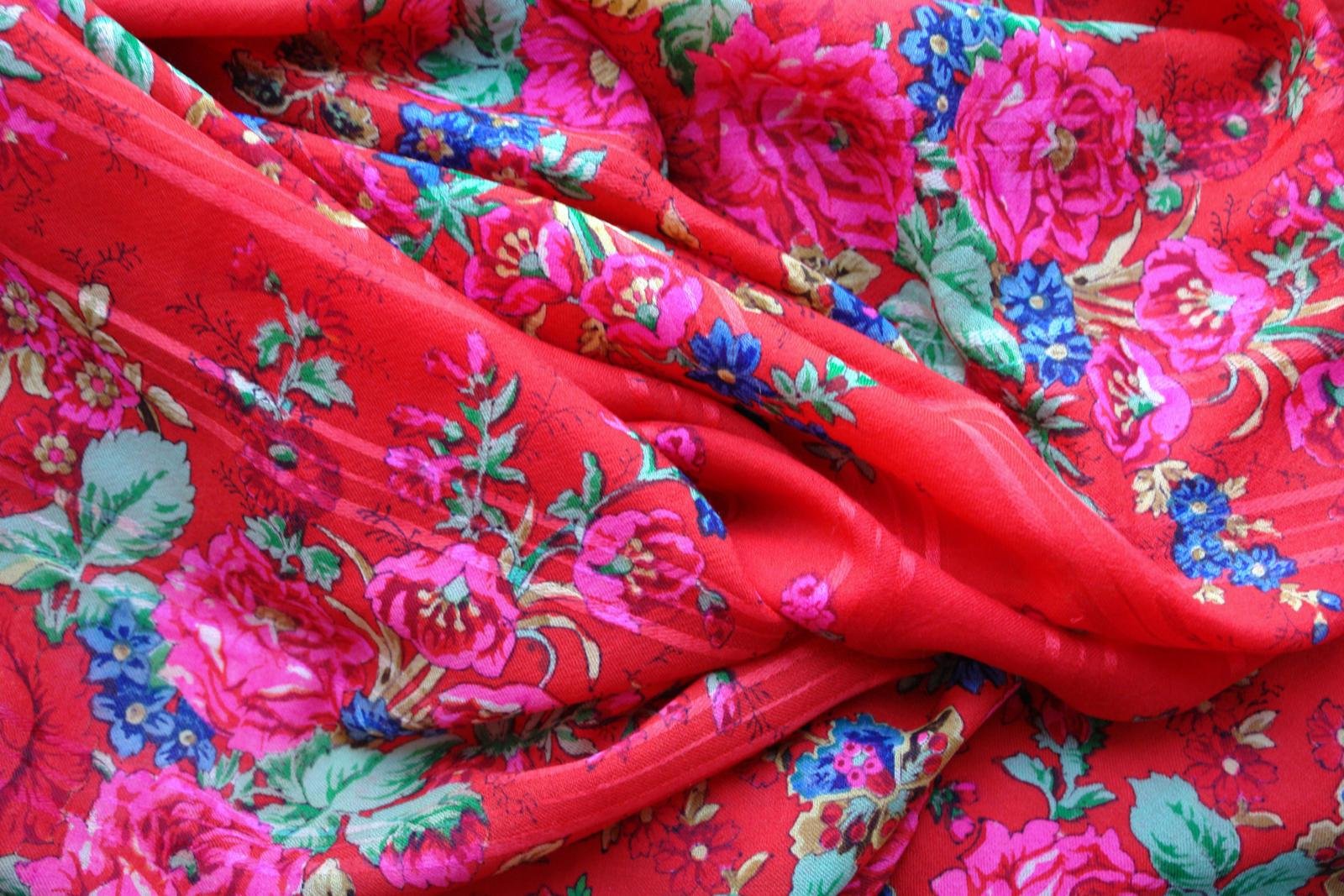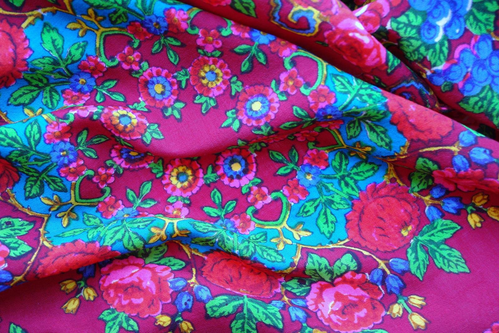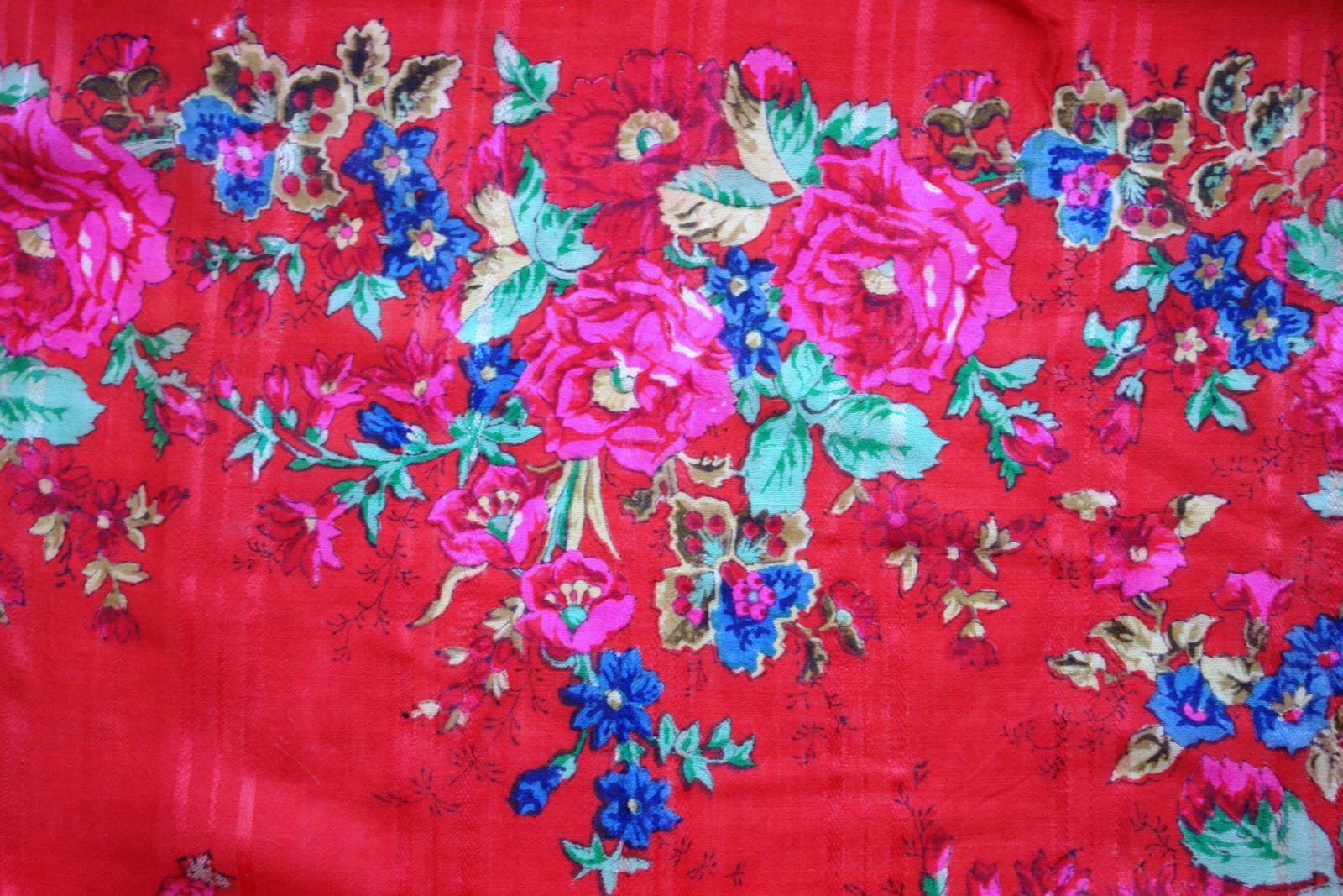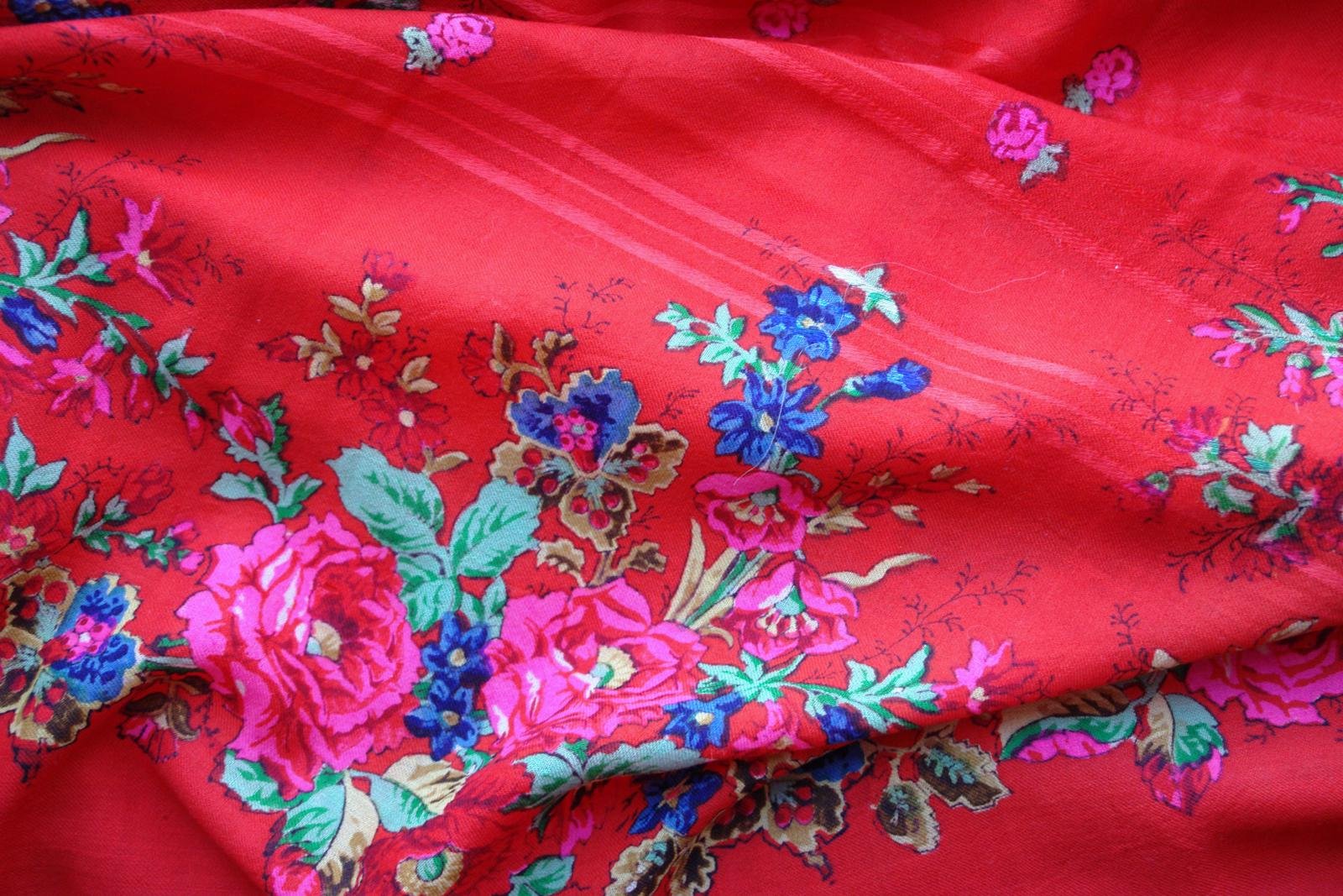 Тонкая шерстяная ткан. Ручная набойка. Размер 130х130