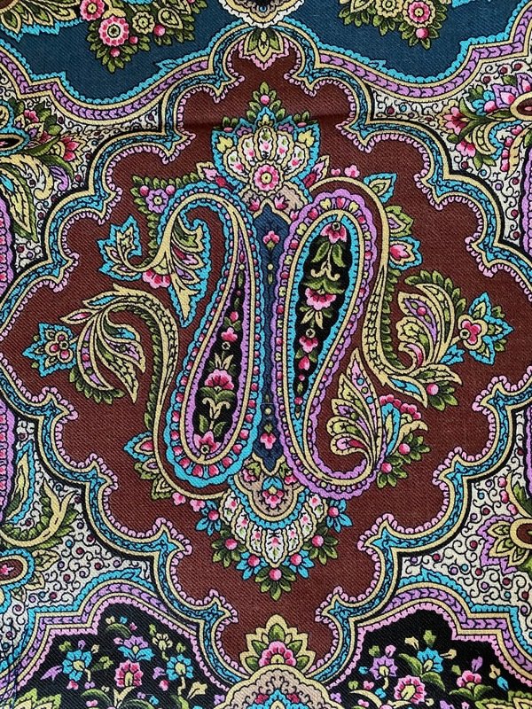 "Колдовская ночь", вид 14. Яркий в меру. Кайма темного цвета бирюзы. Не синий. Ожидала что то вроде синего графита, по фото казался сумрачным. Нет--красочный, но все умеренно. На мне акцентно вылезает зелень, розовый не перевешивает. Розовый очень светлого оттенка фуксии. Красивый бордово-коричневый и интересный серо-телесный.