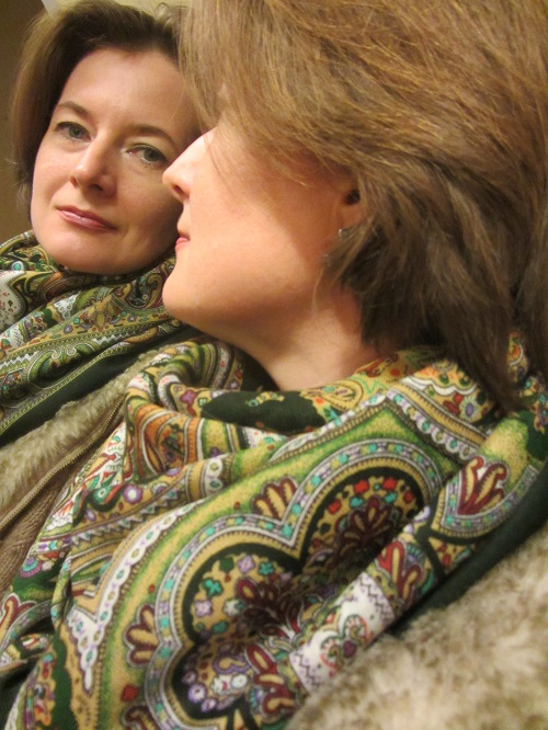 До чего же девушки красавицы. Шали на всех выглядят замечательно. Красота у Вас в офисе!