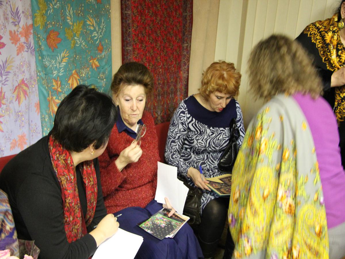Вообще я Ирине Петровне больше всего доверяю в части опознания платков художников своего поколения - Зиновьевой, Слащевой, ну и собственно её личных платков. Тут ошибок, думаю, быть не может. Если только некачественное фото подвело - не все фото квадратиком показывали шаль. Хотя размер фото приличный - в половину листа А4. Также она, как мне показалось, отлично знает стиль Регуновой и Рыжова. Тут тоже ее опознание я бы взяла за основу. А Ольшевскую и Штыхина можно перепроверить по живым платкам у самой Ирины Петровны, если будет возможность.