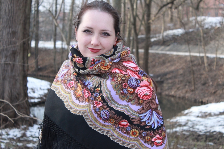 Демонстрируем ношение платков и шалей.