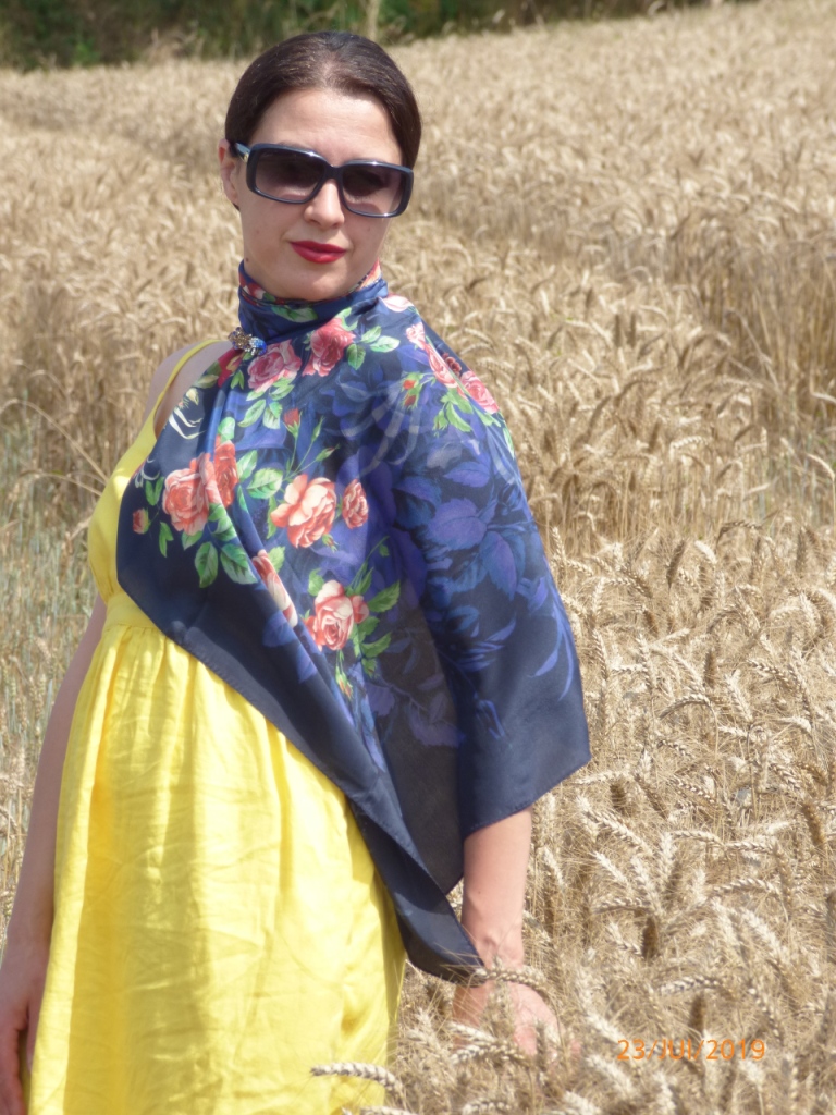 Фрекен_Жюли, Татьяна Имбирь, у меня только единственная жёлтая шалька, это Аза. Мне думалось, что ошибиться невозможно. Когда спросила у мужа :"- Это что реально жёлтый цвет?" Он мне ответил, что открыв мой платочный шкаф, эти жёлтые розы на платке просто ослепили его, он его и взял. А жёлтый надо было искать, смотреть, да и вообще, они все у тебя на одно лицо:)) а чёрное на жёлтом не хуже жёлтого на жёлтом. Одним словом, -мужчина. Ну и ладно, в другой раз посмотрю как будут сочетаться друг на дружке два очень насыщенных оттенка жёлтого. А в шёлковой шальке я была изначально, т.к. у нас +30.
