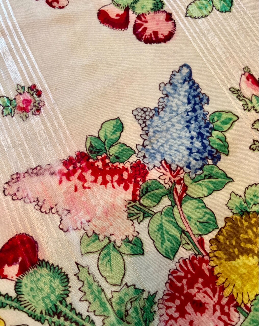 На последнем фото - этот же угол платка с изнанки. В области листочков букетика - остатки клейма.