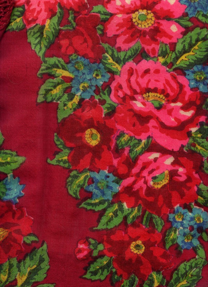 Что касается техники печати Вашей шали, то у меня нет никакого сомнения, что шаль напечатана шаблонами. Думаю, шаль Ваша годов шестидесятых, когда фотофильмпечать внедрялась в производство.