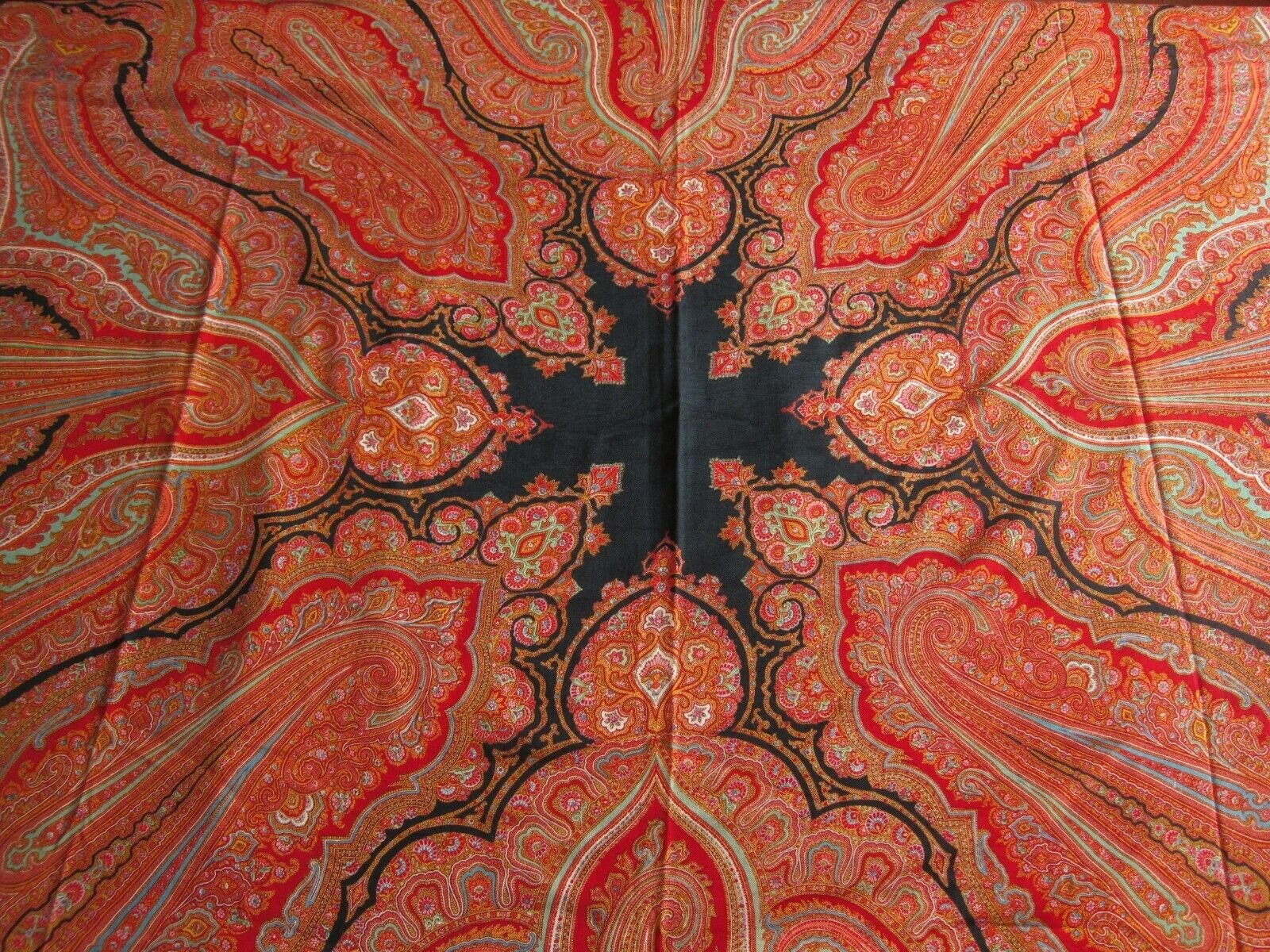 Плотная шерстяная мебельная ткань, блочная печать, мануфактура Thierry-Mieg & Cie, Мюлуз (Эльзас, Франция), 1860
