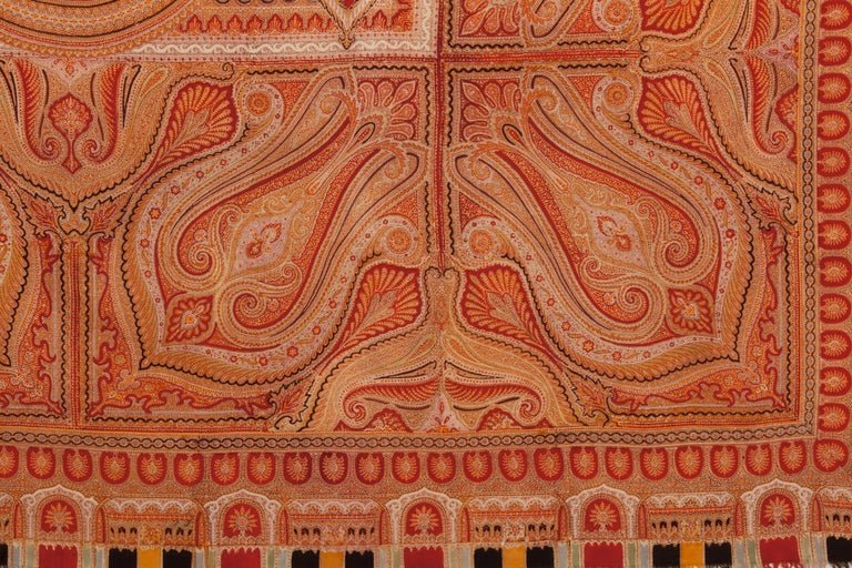 Ранняя викторианская шаль из тонкой шерсти Чаллис с набивным рисунком пейсли с бахромой, 1850-е гг.