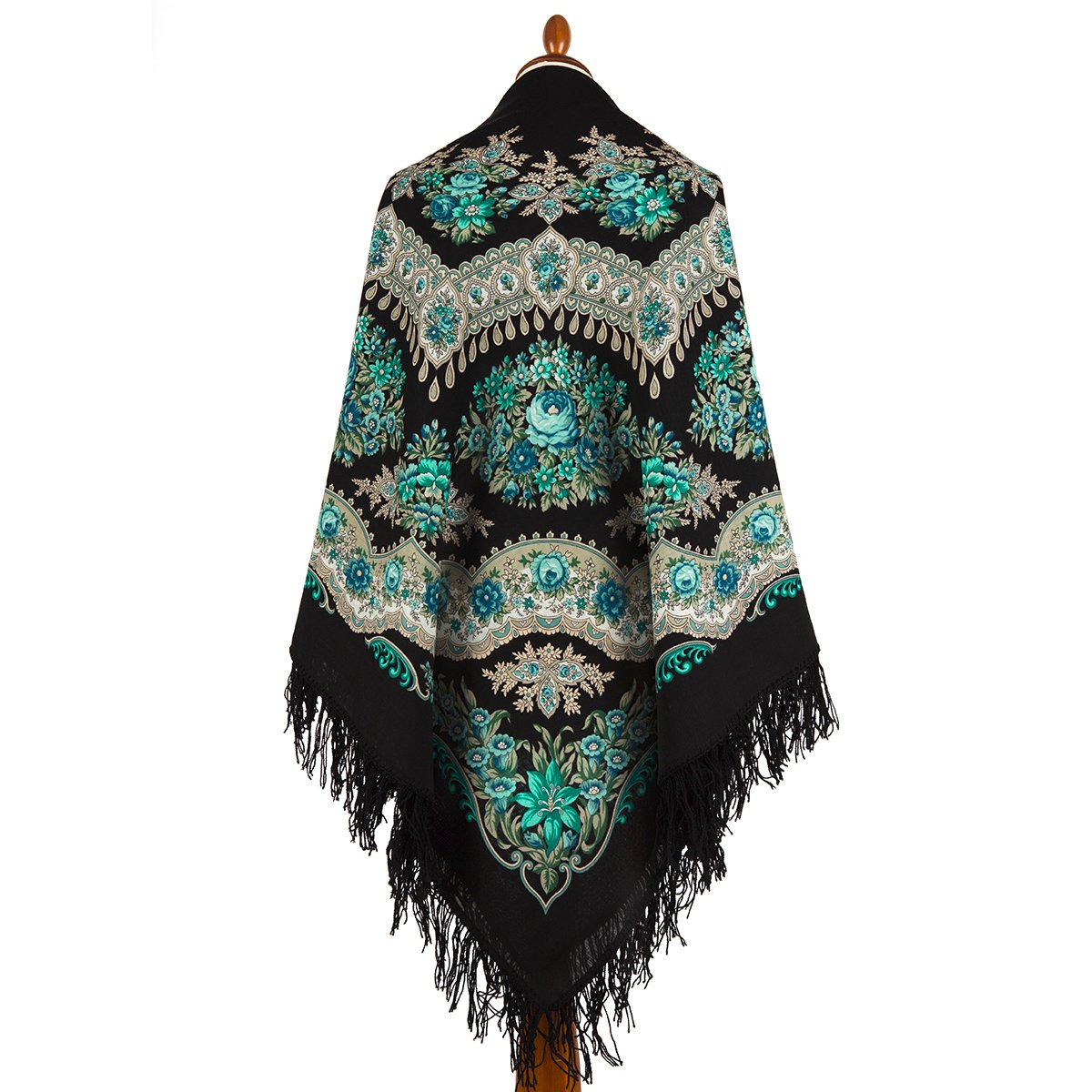 Шаль 150х150 с крупными букетами по углам и ажурным веночком из листьев каштана в среднике