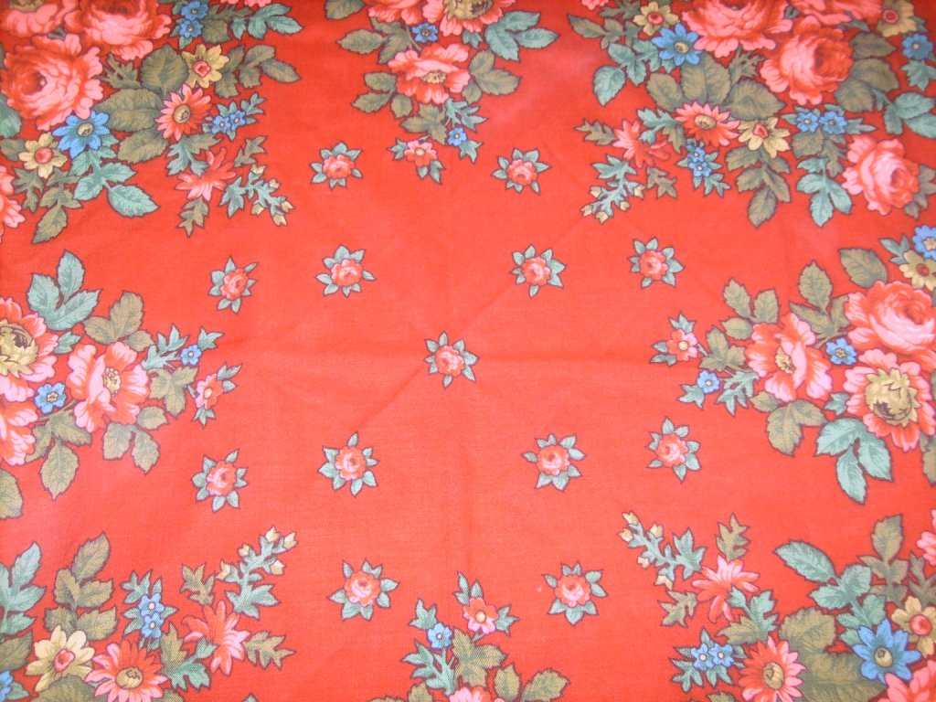 Но этот рисунок таит загадку. Дважды или трижды я видела фото и читала описания довольно старых платков с таким рисунком (под рукой нет базы данных, но точно помню, что не маленькие, как Маков цвет, а 125х125 или 135х135). Платки, согласно той информации, по всем приметам очень напоминали павловопосадские. К сожалению, утверждать это, не подержав шаль в руках, не берусь. Но я не исключаю, что изначально это был именно "наш" рисунок. А потом его, как и еще несколько традиционных рисунков "в русском стиле" (про еще один ранее уже писала в этой ветке), подтырили (или купили) японцы. Вслед за ними эксплуатировать этот популярный рисунок начали все кому не лень, в самых разнообразных размерах (оригинального и меньше) и на всем чем придется - на синтетике, например. Что особенно интересно - рисунок совершенно не менялся. (если не говорить о красках, добавлении контрастности, зеркальных отображениях и т.п.) А в Павловском Посаде Галина Сотскова нарисовала Маков цвет - другой, но явно "на тему".