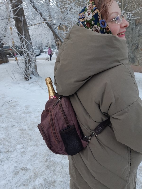 Вижу в рюкзачке горлышко от шампанского. ::