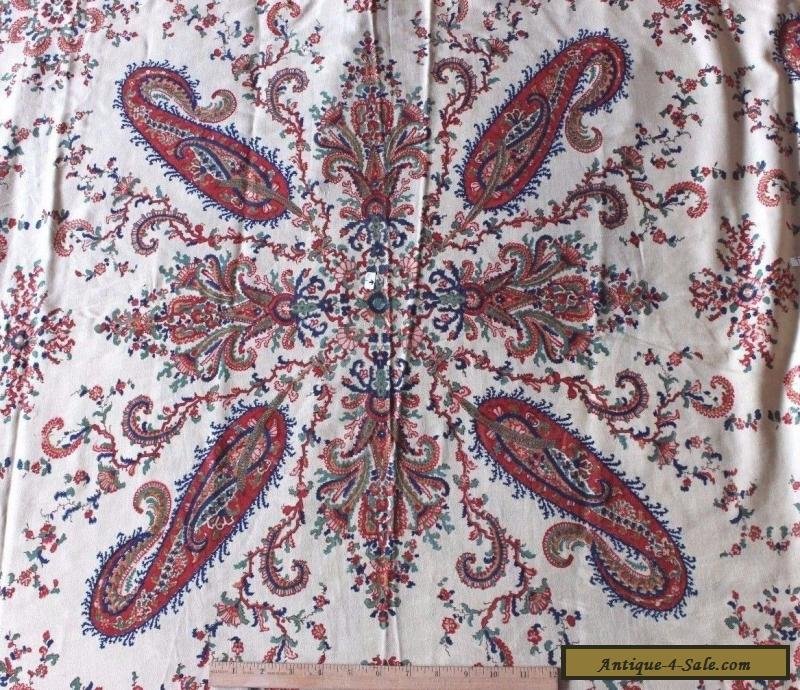Старинная набивная шерстяная шаль с кашмирским рисунком, Франция