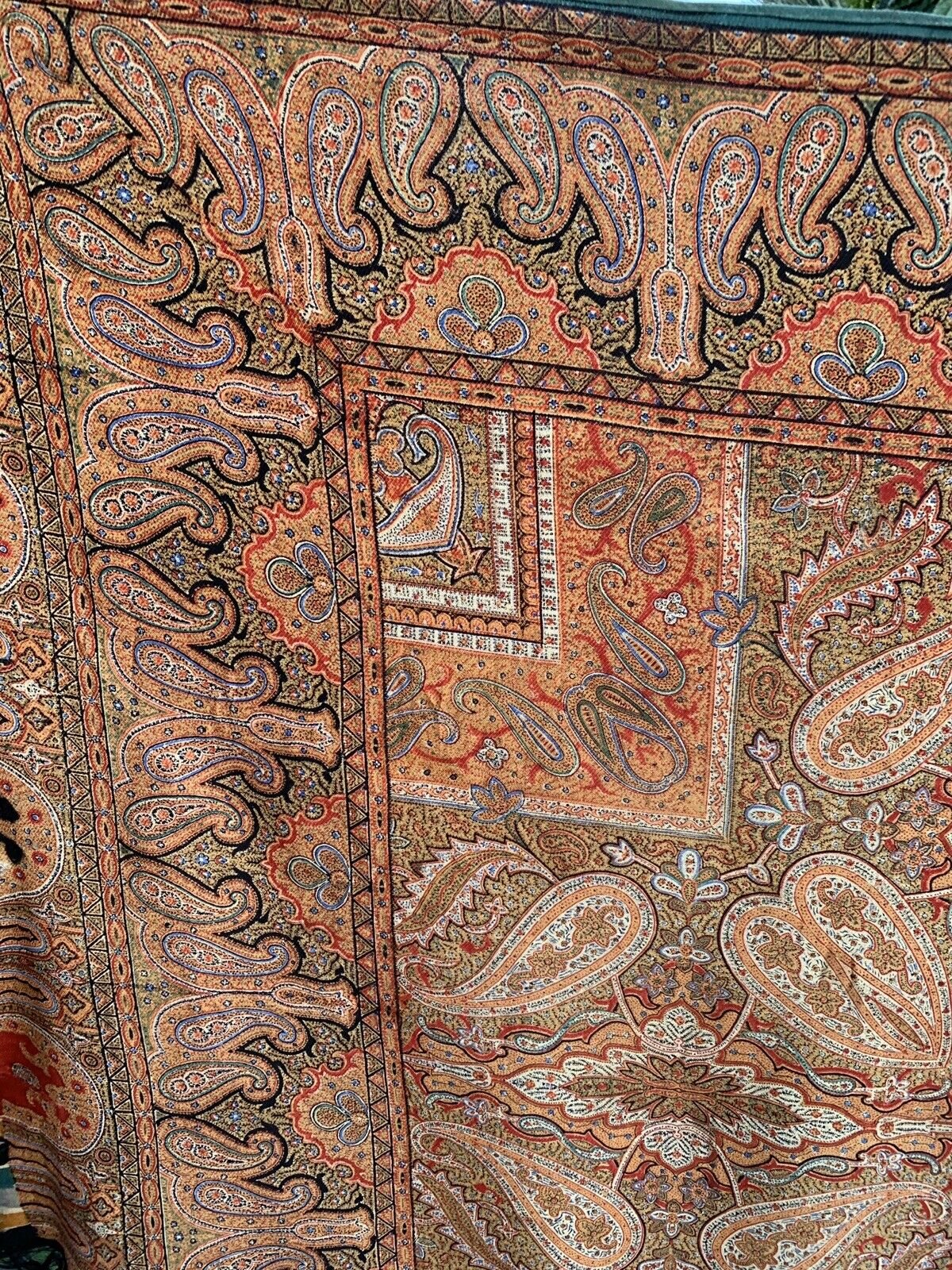 Старинная набивная кашемировая шаль, блочная печать, Франция, 1830 – 1850 гг.