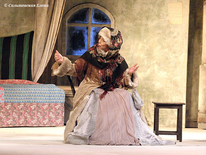 Вчера была в филиале Малого на спектакле "Бедность не порок". Чудесный рождественский вечер, очень живая и уютная постановка, не смотря на то, что спектаклю уже около 10 лет (Кликните, чтобы почитать, что спрятано под катом)... Использована музыка Г.Свиридова к "Метели", на редкость органично подходит. На сцене заснеженный провинциальный город, задник оформлен по мотивам "Масленицы" Б. Кустодиева. Белой завистью позавидовала, т.к. пришла в театр с зонтиком... В этой теме уже были фотографии со сценами из спектакля, добавлю еще (нашла в интернете). На главной героине - черный "Турецкий", на ее маменьке - "Молитва" с красной бахромой.