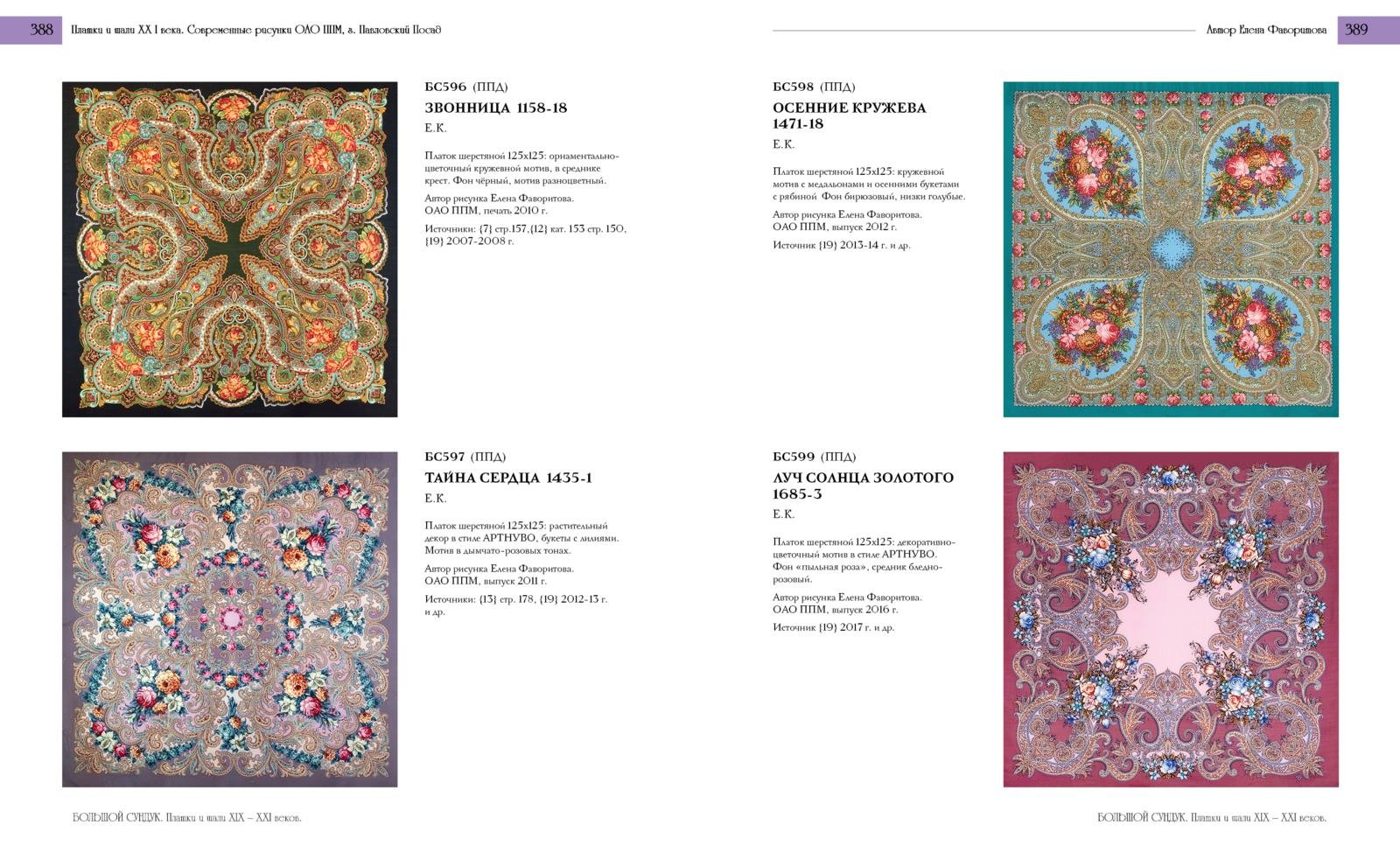 Настоящее издание подготовлено к выпуску в год 225-летия старейшего текстильного предприятия России - Павловопосадской платочной мануфактуры, содержит фотографии 615 платков и шалей из частной коллекции автора и других источников. Фотографии снабжены комментариями и сопровождаются историческими справками, позволяющими составить общее представление об эволюции рисунков павловопосадских платков и шалей на протяжении последних 150 лет существования платочного производства в России. В альбоме представлены фотографии уникальных антикварных шалей с ранее нигде не публиковавшимися рисунками, с выпуска которых прошло более 130 лет. Всего опубликовано более 200 оригинальных или восстановленных старинных рисунков конца XIX – первой половины XX вв., более 200 антикварных и винтажных рисунков советского периода, начиная с 1920-30 гг. прошлого века, более 80 городковских шалей 1950-х-70-х гг., а также, авторские работы известных павловопосадских художников XIX-ХХI вв., среди которых около 100 современных рисунков. Издание содержит богатый иллюстративный материал, может быть интересно и полезно широкому кругу читателей, включая студентов художественных и текстильных учебных заведений, музейных работников, искусствоведов, исследователей, коллекционеров, любителей и собирателей платков в павловопосадском стиле.