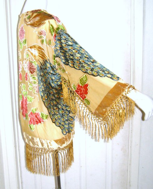 Уважаемые сообщницы, как полагаете, реально ли скроить из испорченной шали вот такую накидку/халатик?