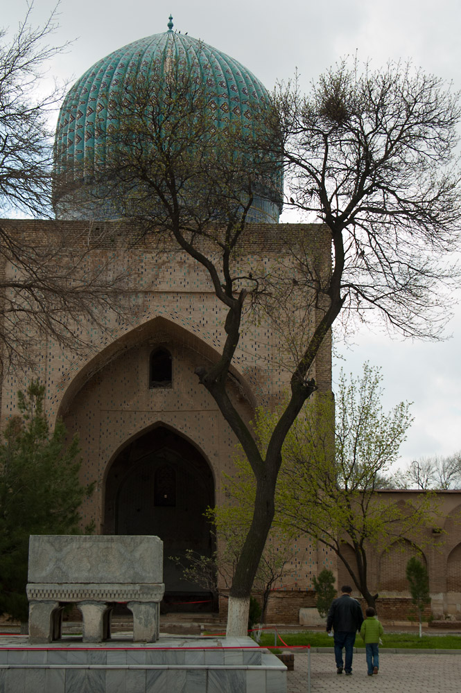 Через дорогу от медресе - мавзолей Биби Ханум. Это небольшое, скромное здание. Могилы в нем действительно есть, с простыми каменными надгробиями. Насколько я знаю, антропологи изучали останки, замеряли, фотографировали, описывали, а потом вернули на место.